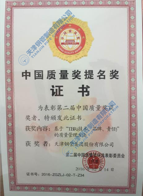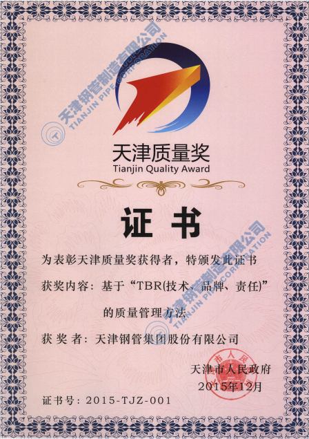 公司榮獲天津質(zhì)量獎(jiǎng)。